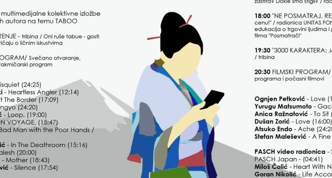 JSFF prikazuje kratkometražne filmove japanskih i srpskih autora ili filmove snimljene na području Srbije i Japana na zadatu temu. Četvrti po redu JSFF sastoji se od takmičarskog, revijalnog i pratećeg programa (kulturno-umetnički i edukativni sadržaji) na temu tabu.