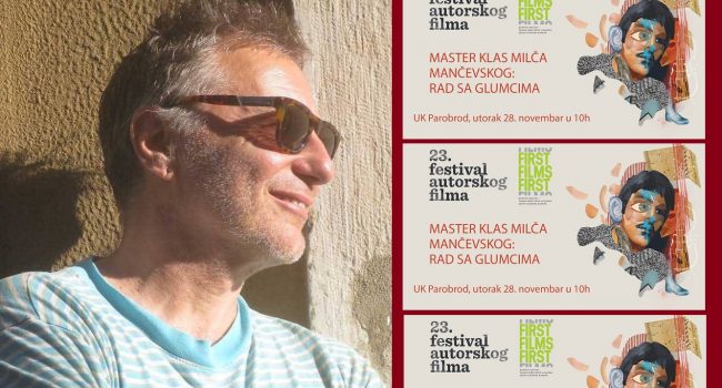 Platforma First Film First i Festival autorskog filma vas pozivaju vas na masterklas Milča Mančevska naslovljen „Rad sa glumcima”. Dobitnik Zlatnog lava, reditelj Mančevski, u saradnji sa glumcima Nikolom Rakočevićem i Milicom Stefanović, demonstriraće svoj metod rada sa glumcima na praktičnom primeru režiranja jedne scene. Masterklas će na engleskom jeziku biti održan 28. novembra u Ustanovi kulture „Parobrod“, s početkom u 10 časova.