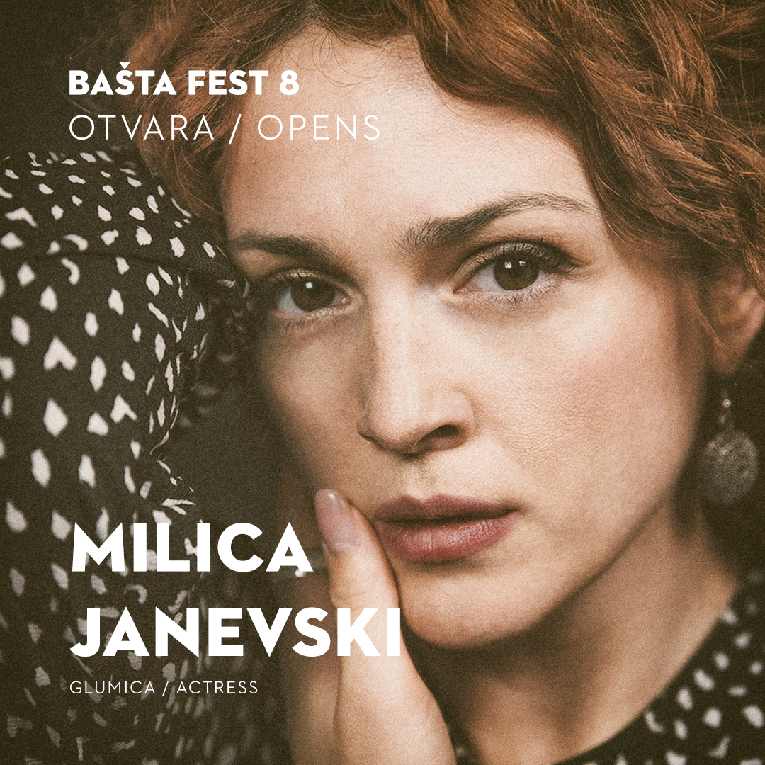 Osmi Bašta fest otvara glumica Milica Janevski, poznata po ulogama u filmovima „Odumiranje“ Miloša Pušića, „Otac“ Srdana Golubovića i seriji „Kosti“ Saše Hajdukovića.