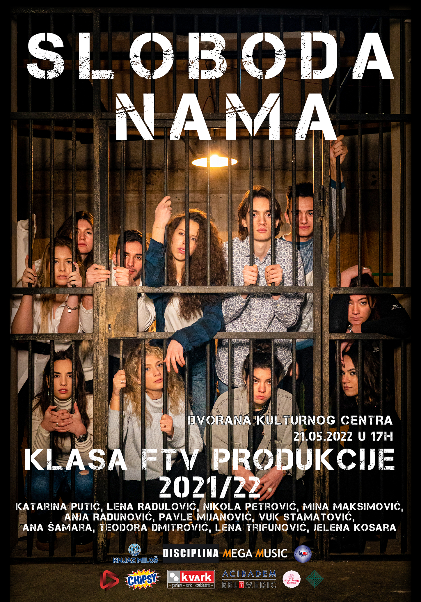 U subotu, 21. maja 2022. godine, u Dvorani kulturnog centra, sa početkom u 17 časova, nova generacija producenata sa Fakulteta dramskih umetnosti iz Beograda predstaviće kratki film „Sloboda nama“.