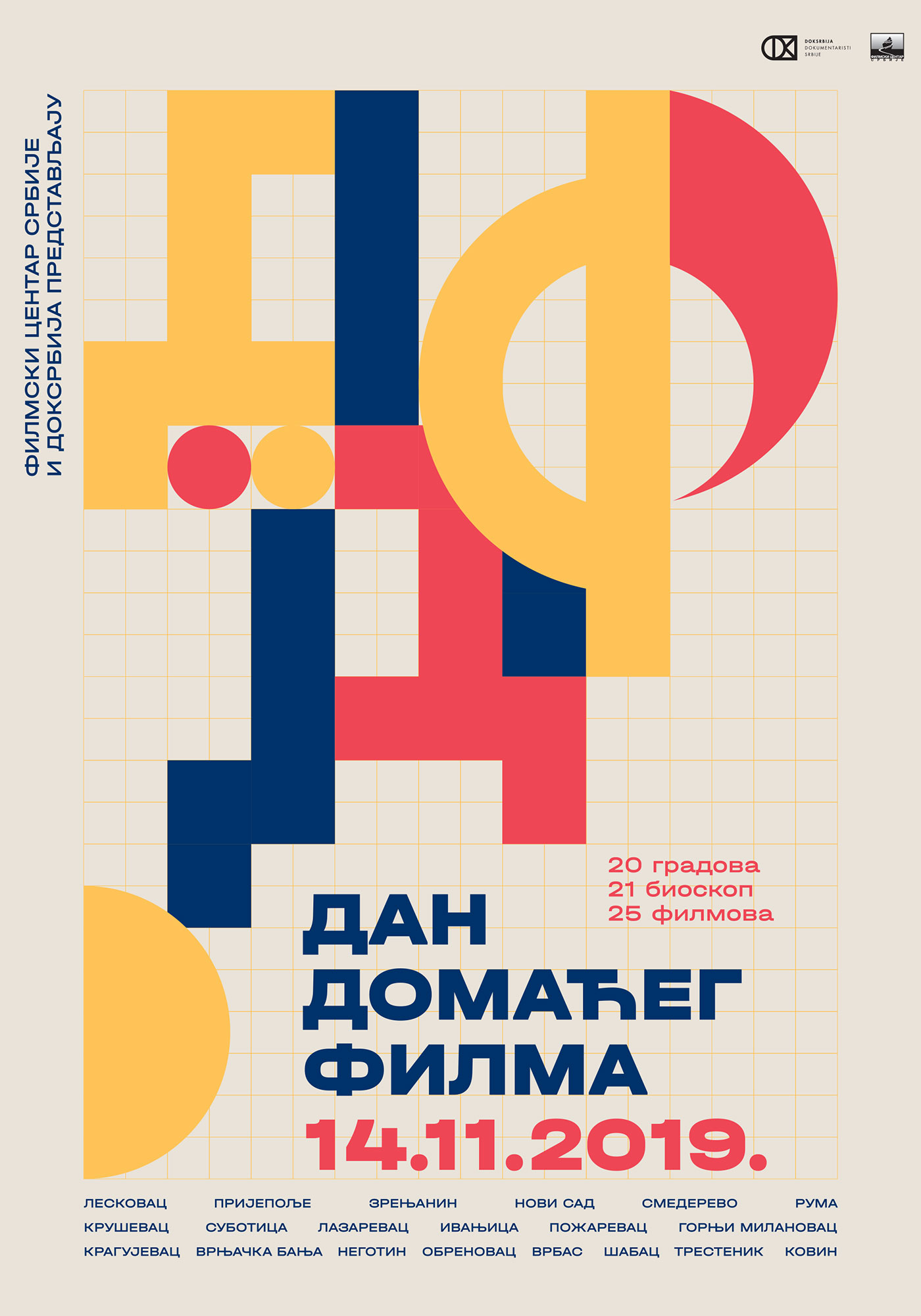 U organizaciji Filmskog centra Srbije i DOK Srbija, a u okviru programa Dan domaćeg filma, u četvrtak 14. novembra biće održane projekcije čak 25 domaćih dokumentarnih filmova, u 21 bioskopu u 20 gradova.