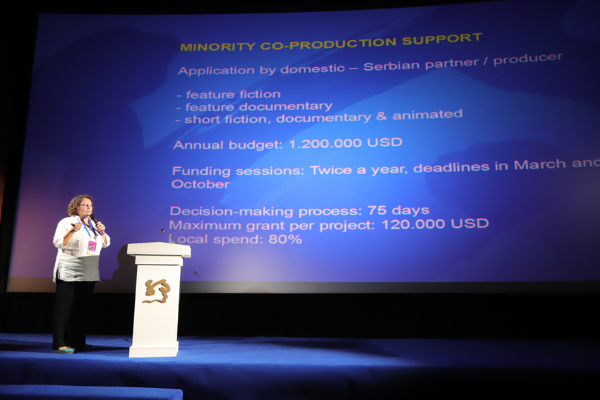 U najstarijem gradskom bioskopu (iz 1916. godine) delegati zemalja učesnica su održali kraće prezentacije o mogućnostima koprodukcija. Osim visokih kineski zvaničnika, učesnika Okruglog stola o koprodukcijama, prezentacijama su prisustvovali i kineski producenti i distributeri. Marija Ristić je predstavila rad Filmskog centra Srbije, sa akcentom na Konkurs za manjinske koprodukcije, kao i Konkurs za originalnu ideju za realizaciju dugometražnog igranog filmskog projekta koji prikazuje vezu izmedju srpskog i kineskog naroda, koji je Filmski centar Srbije raspisao prošle godine na inicijativu Ministarstva kulture i informisanja. Poseban akcenat je stavljen na predstavljanje programa filmskih podsticaja koji Srbija nudi, kao i činjenice da je na snazi bezvizni režim izmedju Narodne Republike Kine i Srbije, a koji u mnogome olakšava planiranje i realizaciju snimanja projekata.