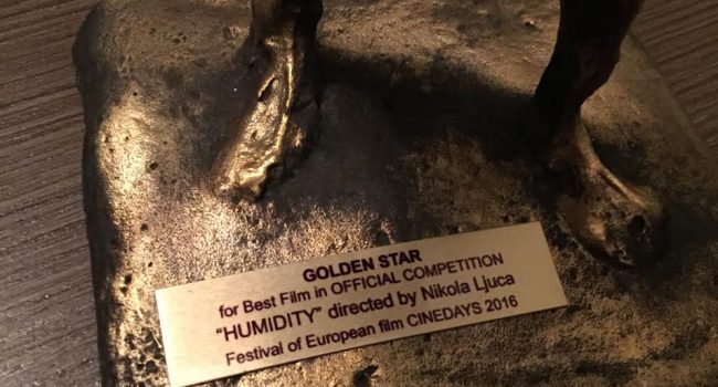 Vlažnost, prvi celovečernji film reditelja Nikole Ljuce, osvojio je nagradu Zlatna zvezda (Golden star), dodeljenu za najbolji film u zvaničnom programu 15. Festivala evropskog filma Sinedajs (Cinedays) u Skoplju.