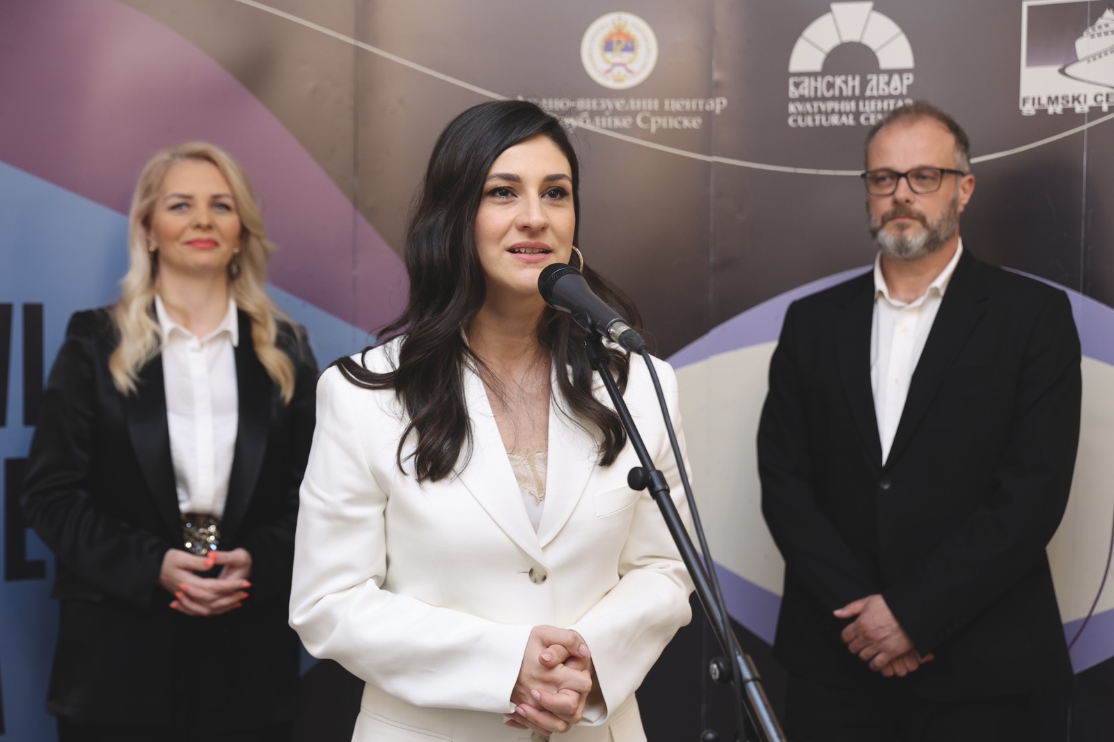 Prisutnima su se obratili v.d. direktora Audio-vizuelnog centra Republike Srpske Anja Ilić, direktor Filmskog centra Srbije Gordan Matić i ministarka prosvete i kulture u Vladi Republike Srpske Natalija Trivić koja je i оtvorila izložbu.