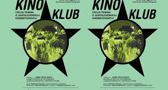 U Klubu Doma omladine Beograda u utorak, 24. aprila, s početkom u 19 časova, biće održana četvrta tribina iz ciklusa „Kino-klub“; tema tribine biće najbolja dečja ostvarenja jugoslovenskog i srpskog filma, gošća će biti Vladislava Vojnović, dramaturškinja i scenaristkinja, a moderatori: Milorad Milinković, reditelj i Dragoljub Stojković, pisac.