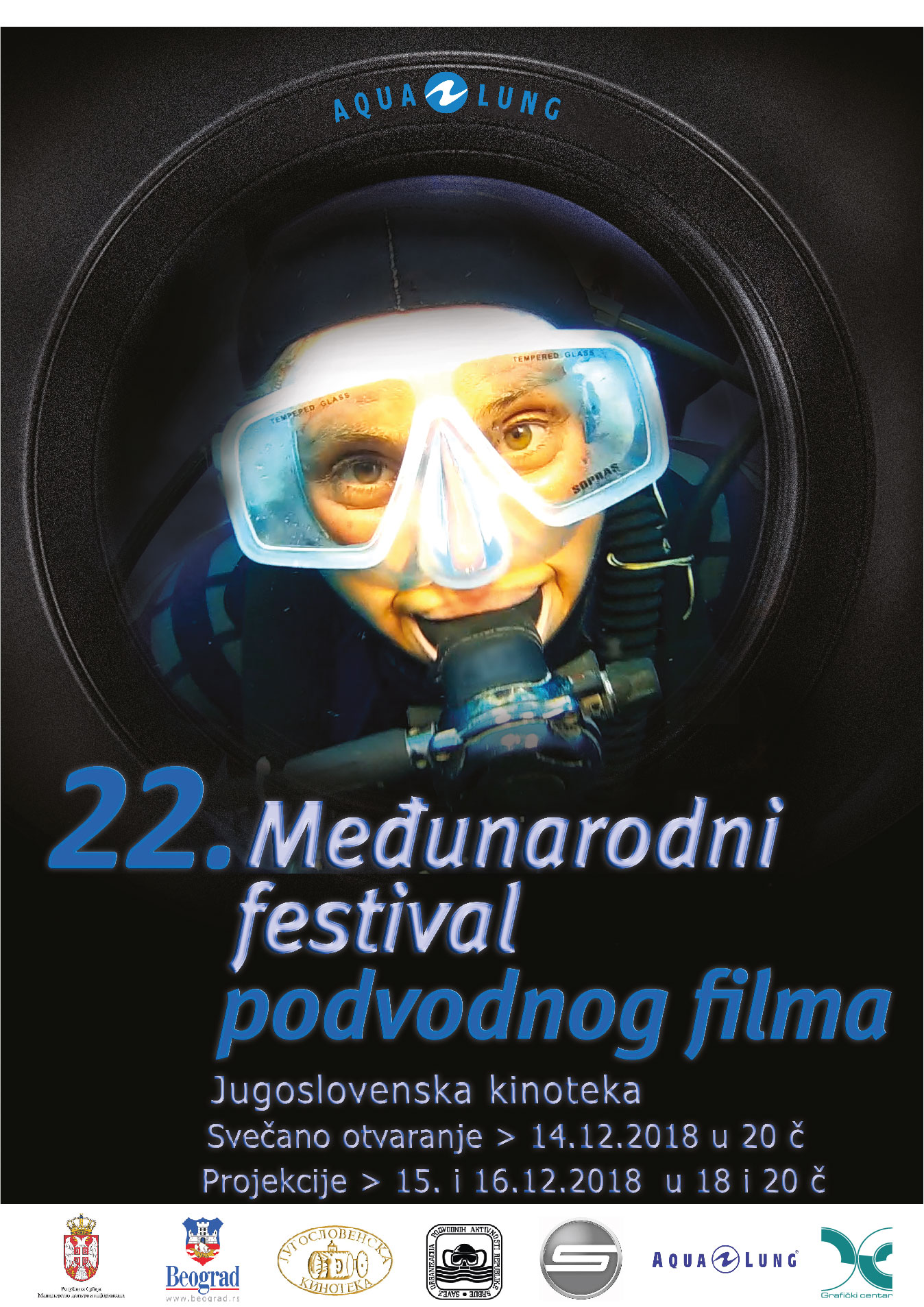 U Jugoslovenskoj kinoteci (u Kosovskoj 11, u Beogradu) će u periodu između 14. i 16. decembra biti održan 22. Međunarodni filmski festival podvodbnog filma. Svečano otvaranje je u petak u 18 časova, a projekcije u subotu i nedelju od 18 i od 20 časova.