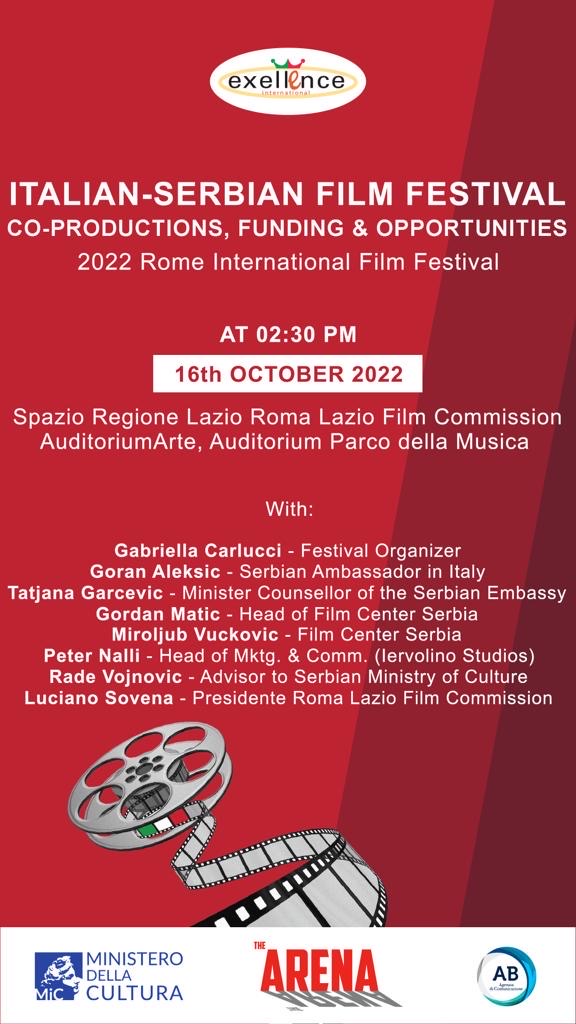 U okviru tekućeg Međunarodnog filmskog festivala u Rimu, danas, 16. oktobra 2022. godine, održan je panel na kome je predstavljen Festival italijansko-srpskog filma i na kome se govorilo o prednostima snimanja u Srbiji, potencijalima srpske kinematografije, modelima podrške naše države filmu i poreskim olakšicama, kao i o podsticajima za snimanje stranih filmova u Srbiji.