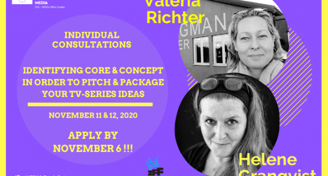MEDIA desk Srbije u saradnji sa MEDIA deskom Hrvatske organizuje predavanje „Identifikovanje suštine i koncepta sa ciljem pripreme i predstavljanja vaših ideja za TV serije“. Ovo dvočasovno predavanje zamišljeno je kao razgovor između Valerije Richter i Helene Granqvist, producenkinja, scenaristkinja i pitching ekspertkinja, koje će se, između ostalog, baviti načinom pripreme i testiranja početne ideje projekta do faze kada projekat može da se predstavi na forumima, pred donosiocima odluka i predstavnicima filmskih fondova/centara. Glavni cilj predavanja je izrada preseka strategije kako ispravno analizirati svoj projekat i kako pravilno planirati razvoj projekta.