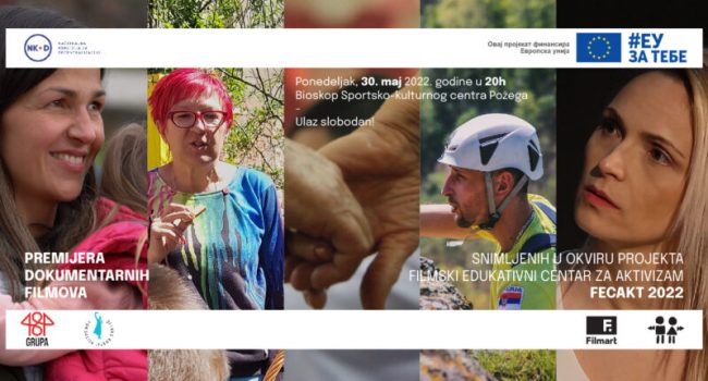 Nezavisni filmski centar „Filmart“ danas, u ponedeljak, 30. maja, od 20 časova u Bioskopu Sportsko-kulturnog centra Požega organizuje projekciju dokumentarnih filmova snimljenih u okviru projekta Filmski edukativni centar za aktivizam FecAkt 2022.