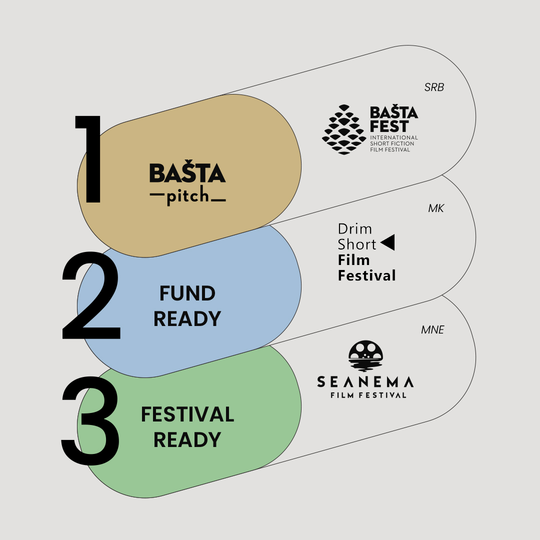 Prvi i trenutno najveći projekat mreže je regionalno proširenje edukativnog programa Bašta Pitch, u okviru kojeg će se okupiti mladi filmski autori iz Srbije, Severne Makedonije i Crne Gore. Biće izabrano pet projekata za kratki igrani film do 30 minuta koji će učestvovati na tri radionice: Bašta Pitch na Bašta Festu, Fund Ready na Drim Short Film Festivalu i Festival Ready na Seanema Film Festivalu. Svaki projekat imaće dva predstavnika – reditelja i producenta, a u okviru ovog programa biće ukupno 10 učesnika. Nakon završene tri radionice, u oktobru će biti održana web konferencija na kojoj će se sumirati utisci i predstaviti projekti široj publici nakon završenog rada na radionicama.