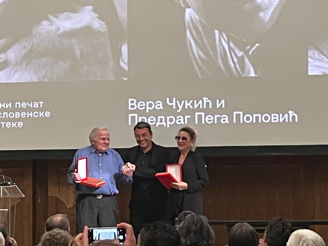 Glumici Veri Čukić i direktoru fotografije Predragu Pegi Popoviću večeras, 6. juna – na dan prve filmske projekcije na ovim prostorima, uručeno je najviše priznanje Jugoslovenske kinoteke. “Zlatni pečat” dodelio im je Jugoslav Pantelić, direktor Jugoslovenske kinoteke, za izuzetan doprinos razvoju filmske umetnosti.